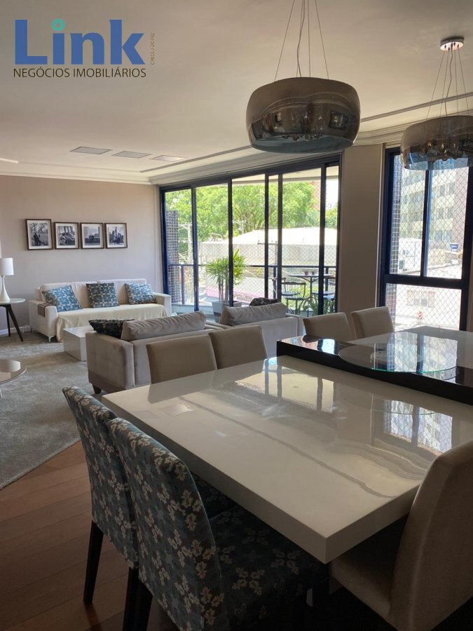 Sala de estar com sacada, integrada a sala de jantar que tranquilamente comporta mesa de 12 lugares, perfeita para receber família e amigos né?