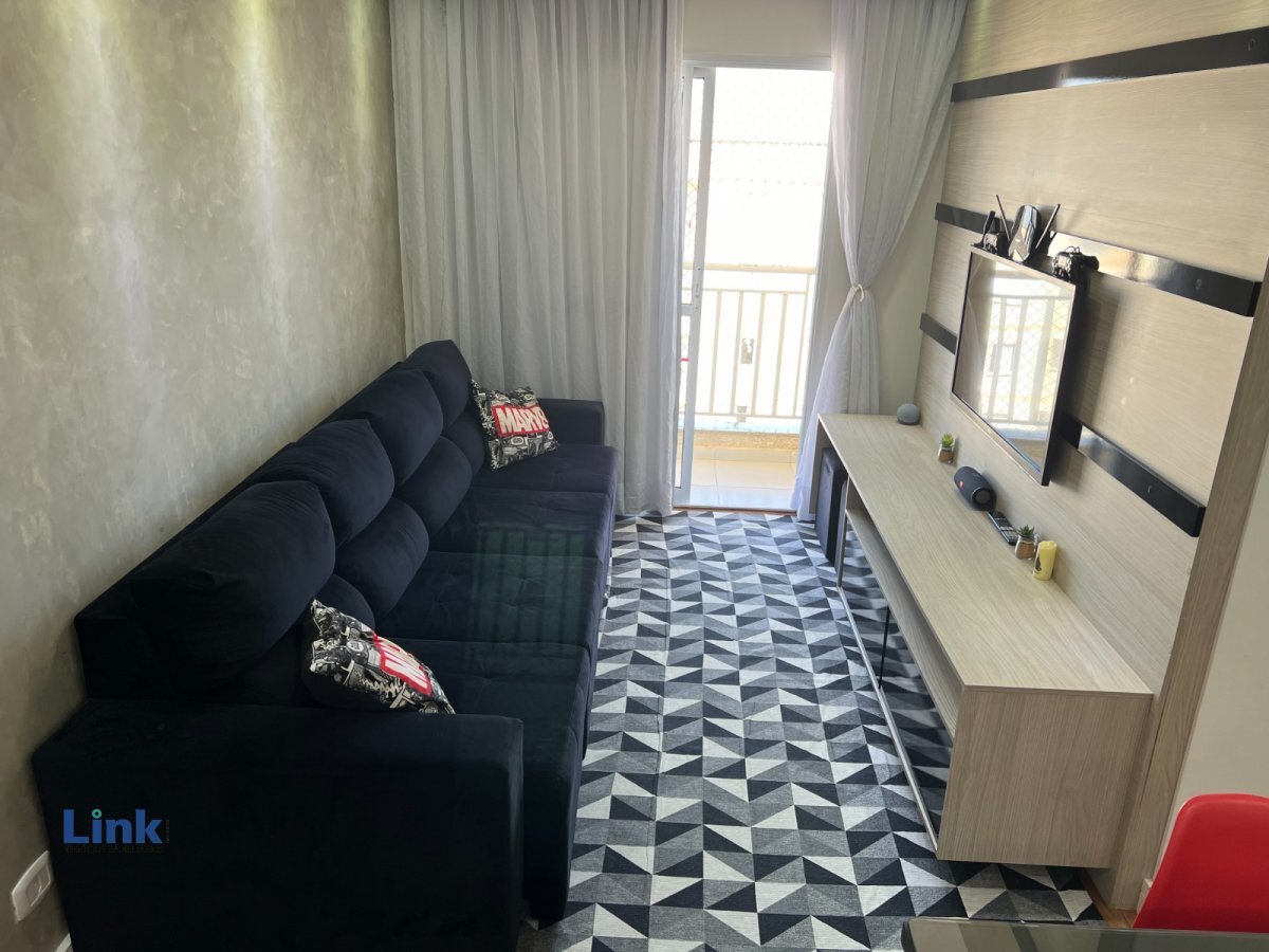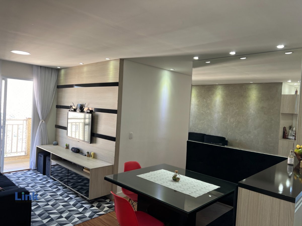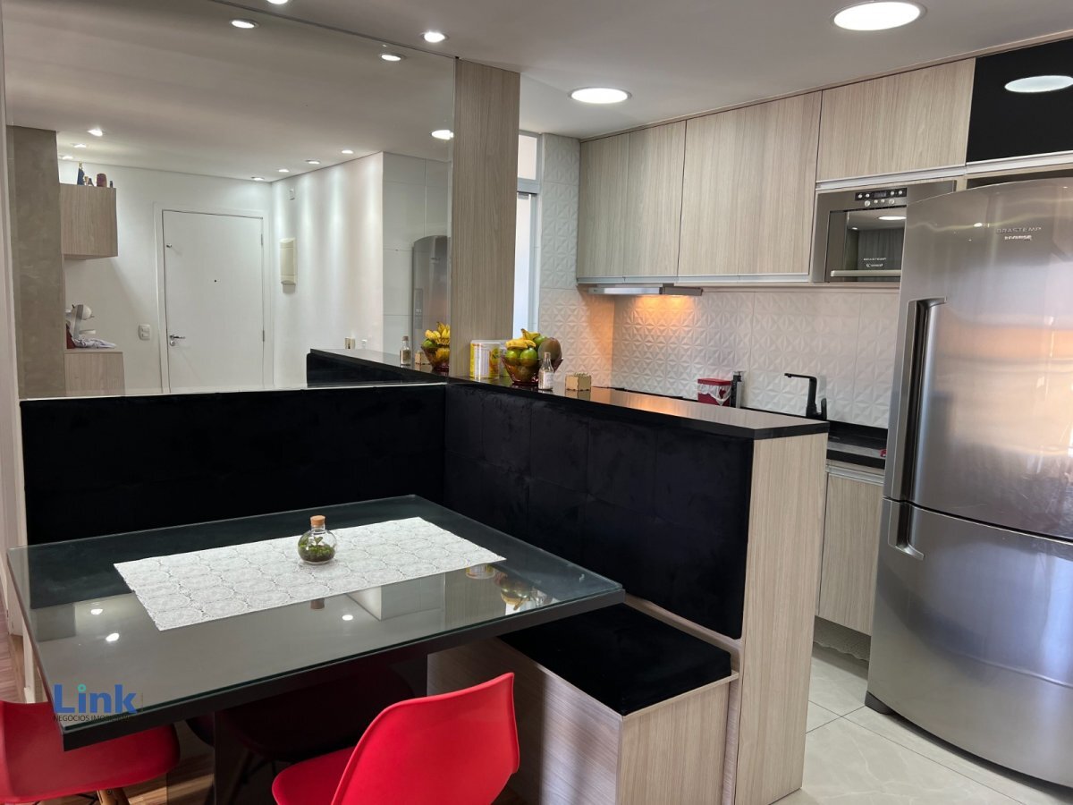 Apto. com 58 m², sala de estar e jantar, sacada, 2 dormitórios, 1 banheiro, 2 Vagas de garagem cobertas. Móveis planejados em todos os ambientes. Condomínio Club com lazer completo.