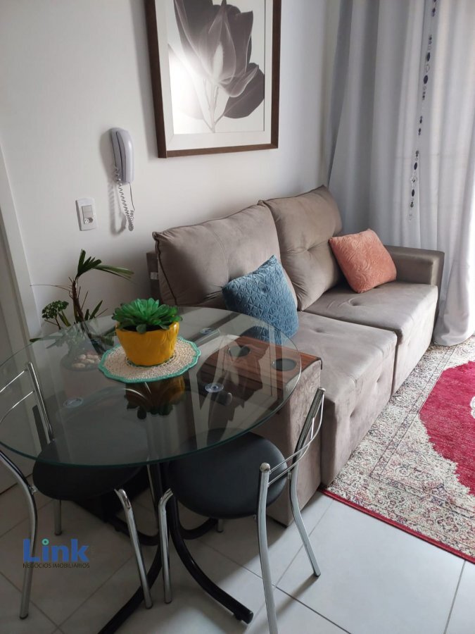 Lindo apartamento padrão de 1 dormitório, sala com cozinha conjugada, com sacada para a sala e quarto, área de serviço. Com ármarios planejados, piso laminado no quarto.Infraestrutura completa de lazer no condomínio, piscina, playgroud, área gourmet, com churrasqueira.