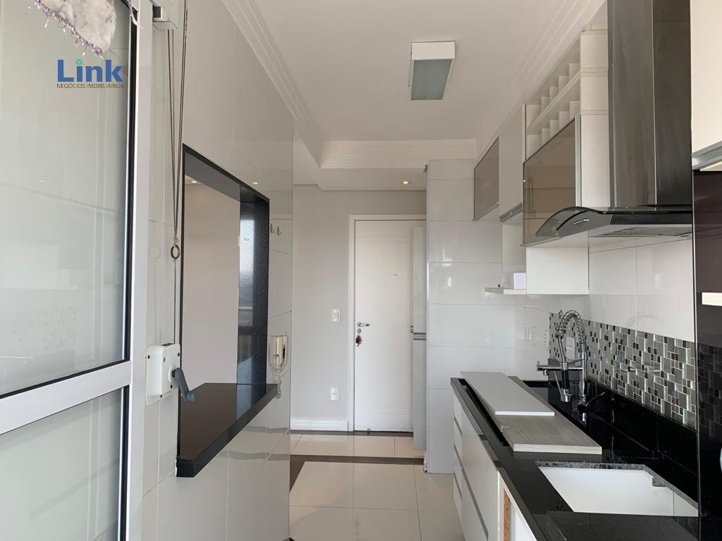 Apartamento do 13 andar, bem arejado, de 3 dormitórios com porcelanato na cozinha, sala e corredor, quarto com dormitório de casal planejado, banheiro com porcelanato, box de vidro e pia com gabinete, cozinha planejada com coifa, área de serviço, sacada com gabinete na pia e garagem coberta.